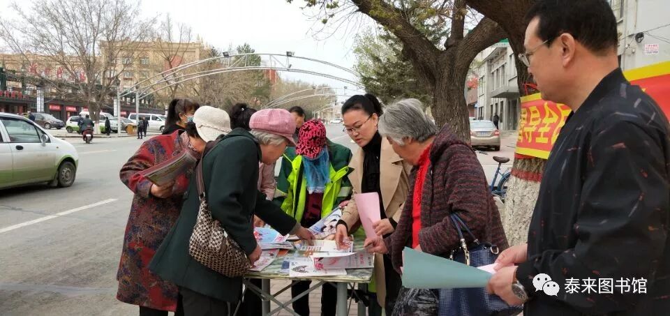 2018年4月23日是第23个“世界读书日”。 为了让更多的人走进图书馆,利用图书馆,泰来县图书馆以“倡导全民阅读,共建书香泰来”为主题,开展了读书宣传活动。活动中,全体馆员走入街头,悬挂条幅、设立咨询台、为过往群众发放宣传单、发放漂流书刊,吸引了众多行人前来关注。